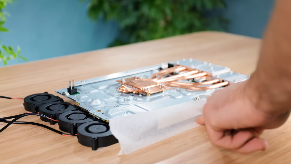 Uma das grandes preocupações do youtuber com o seu projeto foi em manter temperaturas aceitáveis para evitar problemas de performance e superaquecimento. Para resolver esta questão, além de tubos de cobre, dissipadores e diversas ventoinhas foram instaladas no PlayStation 5 Tablet.